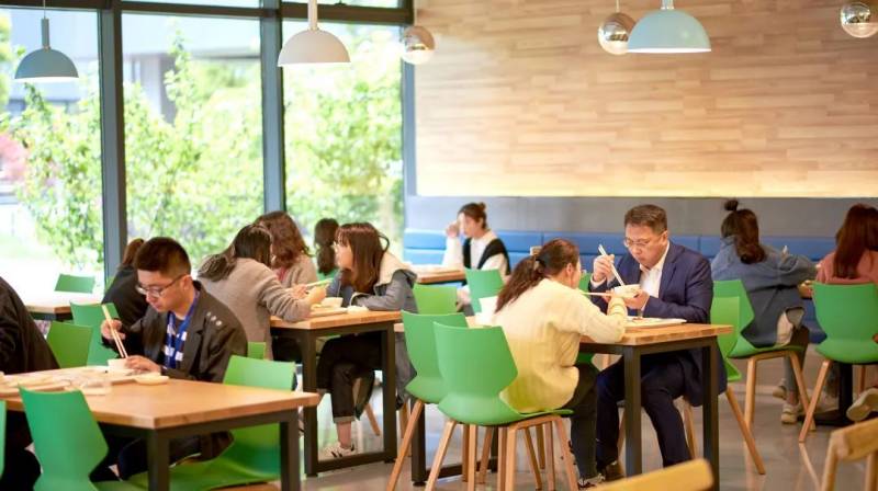 中膳打造園區(qū)、寫(xiě)字樓的食堂時(shí),改變傳統(tǒng)食堂布局,同時(shí)設(shè)立四人位、多人圓桌和吧臺(tái)的設(shè)計(jì),保證了高峰期時(shí)人們的用餐需求,實(shí)現(xiàn)了場(chǎng)景體驗(yàn)與品質(zhì)的全面升級(jí)。餐廳風(fēng)格簡(jiǎn)約時(shí)尚,注重空間體驗(yàn)的優(yōu)化,提高人們就餐的幸福感,讓大家感受到吃飯也是一種享受和休息。