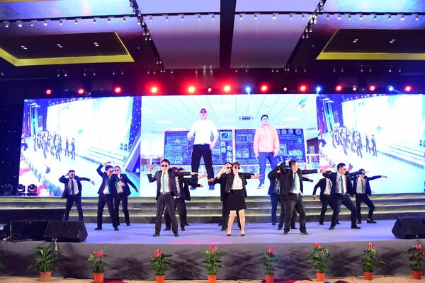 在省級團(tuán)餐行業(yè)協(xié)會代表集體秀中,中膳帶來的舞蹈《社會搖》high爆全場,引來全場鼓掌、拍照。